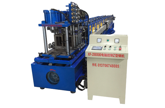 6、液压系统:采用低噪声,高性能叶片双泵,提供成型启动,冲孔,切断之动力,电机功率为22KW,油泵排量76/23,工作压力13MPpa+15Mpa。